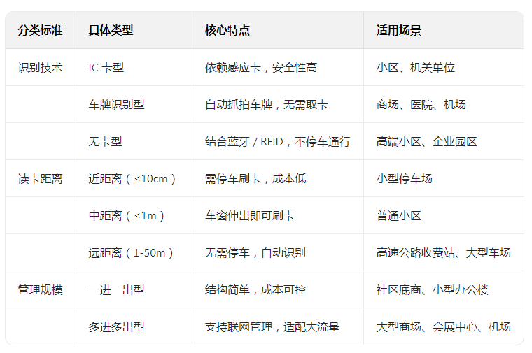 根据使用场景和技术特点,停车场系统可分为多种类型,选择时需结合车场规模、车流特点和管理需求: