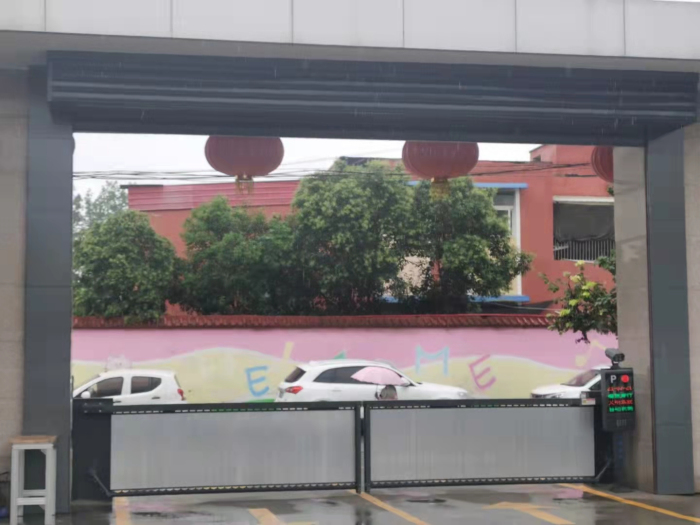 洛阳厂区车牌识别+广告道闸+抗风卷帘门工程